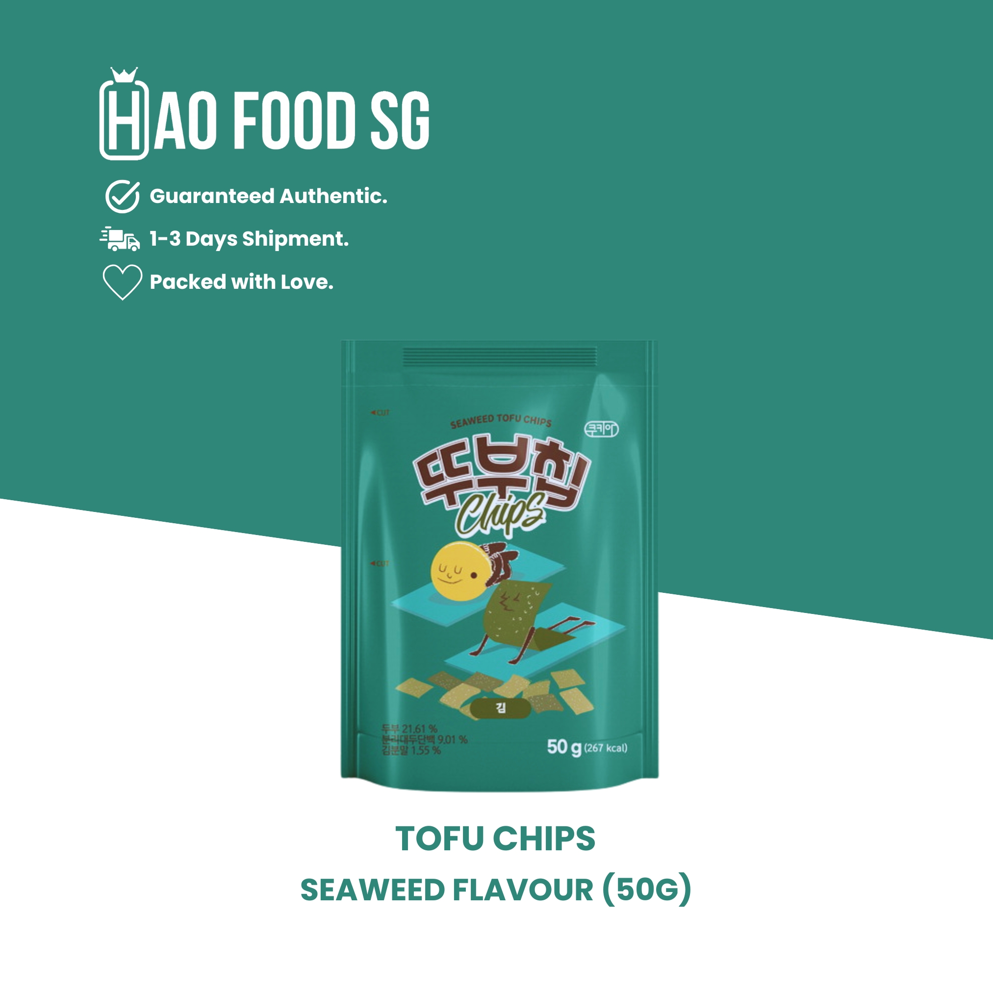 Dive into deliciousness with Seaweed Tofu Chips (50g) — a flavorful blend of tofu and roasted seaweed that gives a perfect umami kick. Light, crunchy, and rich in plant protein, it’s a healthier take on your favorite seaweed snacks.